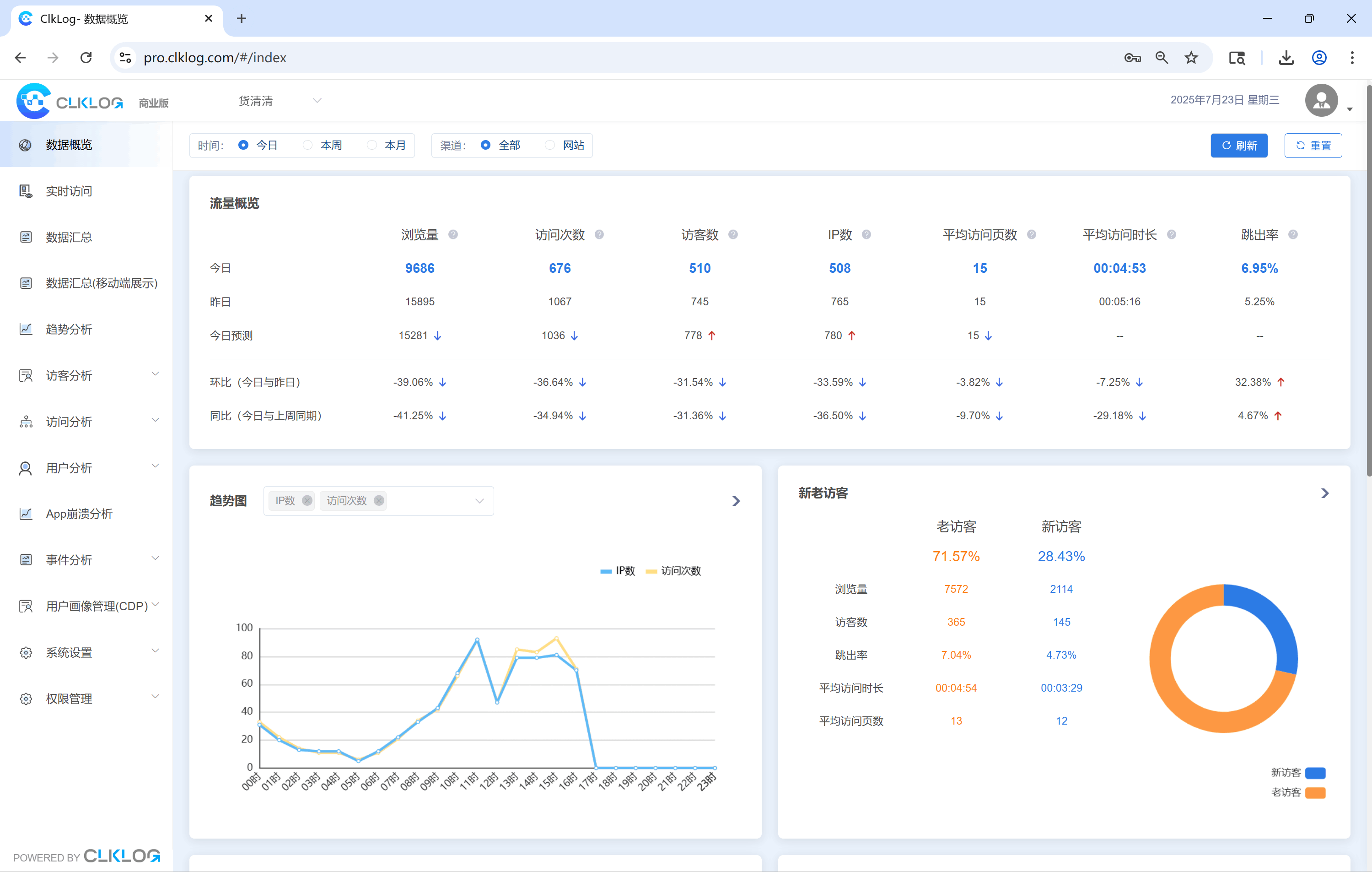 快速获取核心指标:PV、UV、跳出率、访问量等一目了然
