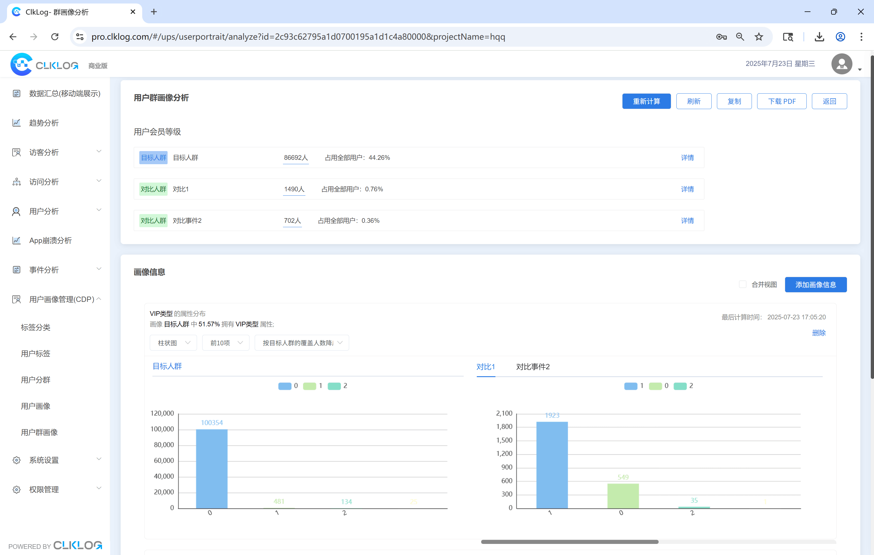 支持人群对比分析用户分布与行为差异,辅助运营策略制定